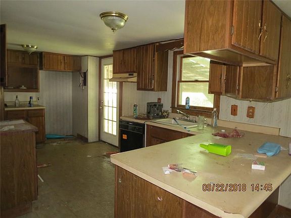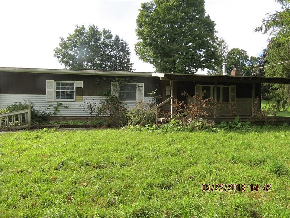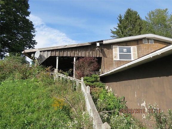 One floor living in hilltop home overlooking miles of view. Detached garage formerly had auxiliary heat piped from house. Inground swimming pool. Selling AS-IS, cash offers only.