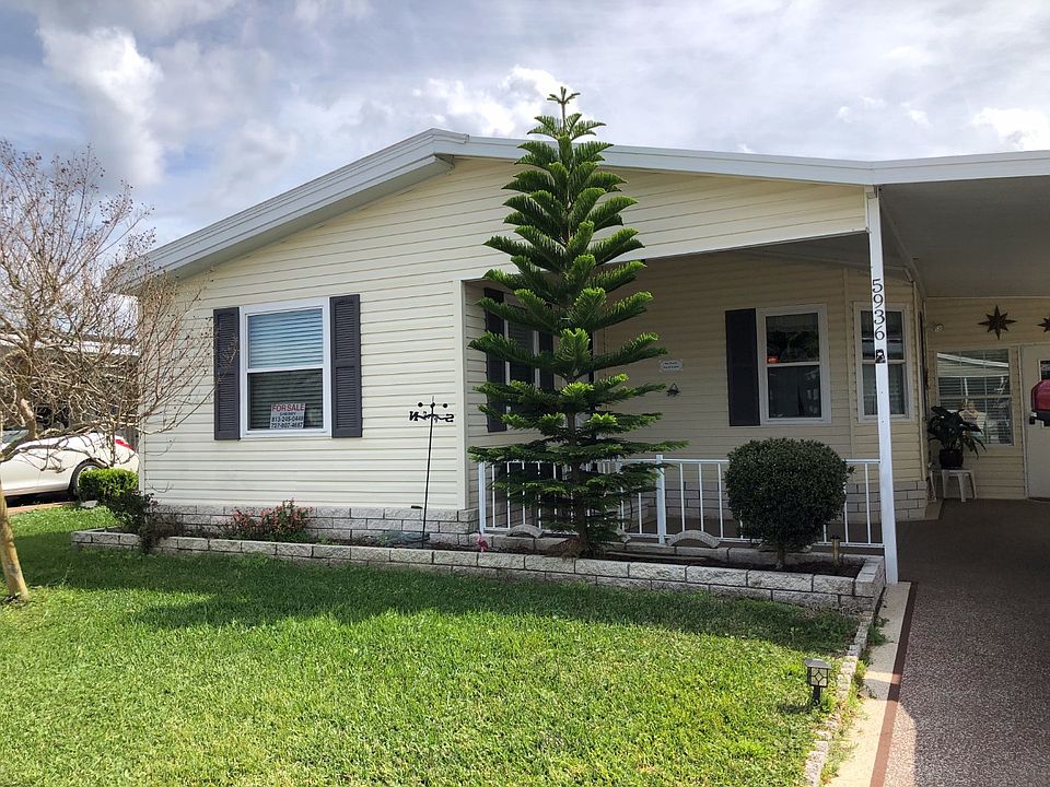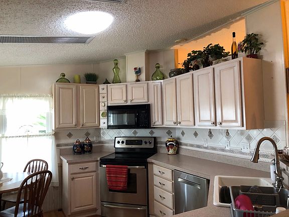 THIS HOME IN FOREST LAKES ESTATES HAS OVER 1500 SQUARE FEET OF LIVING SPACE WHICH INCLUDES 2 BEDROOMS, DEN/OFFICE, AND LARGE CLIMATE CONTROLLED ADDITION. EVERY ROOM IS FULLY FURNISHED AND TURN KEY READY. WHOLE HOME HAS NEW LOW-E THERMOPANE WINDOWS WITH POP-OUT FEATURE FOR EASY CLEANING & MAINTENANCE. KITCHEN features a brand new black stainless steel Samsung refrigerator, stainless steel glass top stove, stainless steel Bosch dishwasher, and double-sided deep porcelain sink with new faucet fixtures. Nice accents include lots of cabinetry with new stainless hardware, decorative tiled back splash, 3 large windows, dinette, chair-rail design, rich wood laminate flooring, solar tubing skylight, and bead board design breakfast bar. LIVING ROOM is open to the kitchen and dining room. Living room has berber carpet, brand new sofa & love seat, 3 matching end tables & coffee table, as well as a hutch cabinet, sitting chairs, and plantation fan. DINING ROOM has built-in hutch, chandelier, and china cabinet. DEN/OFFICE is 150 sq. feet and has a TV, recliners, end tables, desk, and remote control fan. MASTER is extra large with queen bedroom set, extra long-deep closet, and plantation fan. EN SUITE BATH has his/hers sinks with new fixtures, tile flooring, brand new tiled walk-in shower & enclosure, safety rail, raised toilet, and linen cabinets. GUEST BEDROOM has carpet, ceiling fan, long closet, and is large enough for a queen set. 2ND BATH has raised toilet, updated vanity, new sink/faucet, new walk-in shower/enclosure with seat & safety rail, skylight, and extra large linen/storage closet. FLORIDA ROOM ADDITION is large at 231 sq feet. It is fully insulated and A/C-Heat pump controlled like the rest of the home. It is perfect room for entertaining or relaxing while watching TV. This room has high quality rattan sofa & love seat along with matching end tables and coffee table. This room also has the Low-E windows and awnings. WORKSHOP/LAUNDRY/UTILITY ROOM is 454 sq feet. It has Maytag washer and dryer, cabinets, floor-to-ceiling shelving, window, door to back patio, and plantation fan. THE SQUARE FOOTAGE AND ALL THAT COMES WITH THIS HOME IS A STEAL!!! FOREST LAKE ESTATES IS A 55+ LAND LEASE COMMUNITY FOREST LAKE ESTATES FEATURES TWO HEATED POOLS, HEATED SPA, SPACIOUS SUN DECK, TENNIS COURTS, SHUFFLEBOARD COURTS, A BASKETBALL COURT, HORSESHOE PITS, 18 HOLES OF PUTT-PUTT GOLF, FISHING LAKE, & DOCKS. THE CLUBHOUSE HAS A DANCE FLOOR, YOGA, & EVENTS.