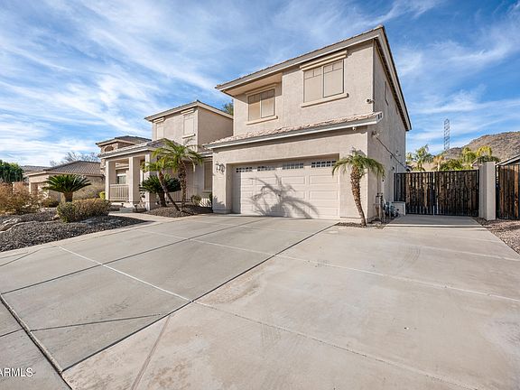 This beautiful 5-bedroom, 3-bathroom home offers a spacious & airy layout, designed for comfort & modern living. Located in a serene gated community, this property is perfect for those who seek a blend of luxury & relaxation. The home has tile & wood throughout, vaulted ceilings, an updated eat in kitchen, in wall fish tank w/all equipment & huge master including a balcony overlooking the gorgeous yard. Step outside to your very own backyard paradise. Whether you're entertaining or simply relaxing, this space has it all including an outdoor kitchen w/grill, flat-top griddle, sink, & kegerator, sparkling pool w/waterfall, waterslide, grotto, relaxing spa & firepit area - perfect for year-round enjoyment. Upgrades include two Trane HVAC units, renovated first floor bathroom & kitchen, new gas hot water heater, automated pool equipment for easy maintenance, & updated pool tile, cool deck & exterior paint. The community offers walking paths, playgrounds, splash park and beautiful mountain views. This home truly has it all, combining luxurious interior features with an entertainer's dream backyard. Don't miss the opportunity to make this your new home!
