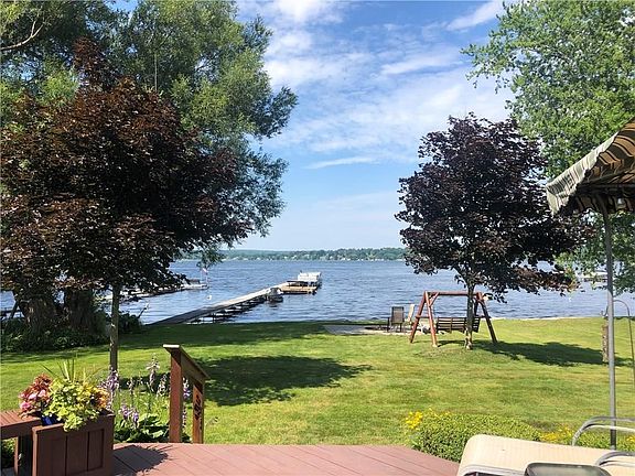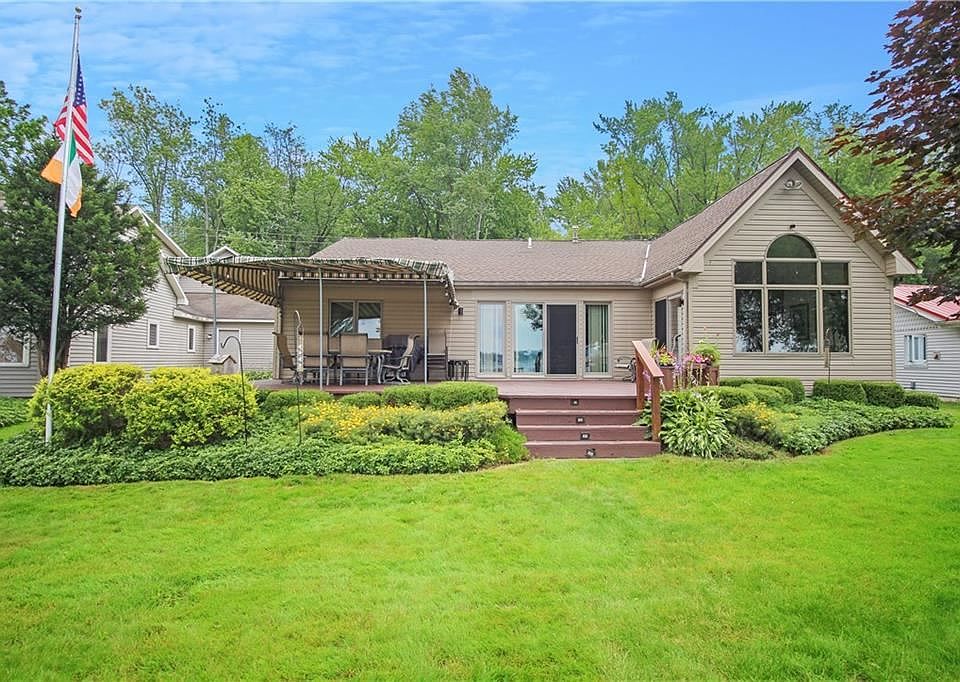 Enjoy this year-round Chautauqua lake home with 50ft of frontage! This home features cathedral ceilings, wood burning fireplace, and an open living/dining/kitchen floor plan; all with gorgeous lake views. Sliding glass doors located in the living and family room allow easy access onto the large covered/uncovered deck. There is tons of storage through out the home to hold all your summer and winter activity needs. The home has a bedroom, bathroom, office, laundry room, and master suite towards the front of the house which then opens up into the perfect entertaining layout. Off the kitchen is an additional full bath and two bedrooms. An attached two car garage, off street parking, and round about provide plenty of space for all your friends and family to come visit.