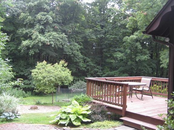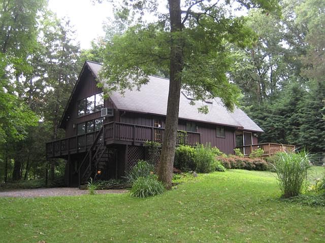 Living in Rhinebeck is fortunate and joyful. Here is your chance to own a home just outside of the village and enjoy the shops restaurants independent movie theatre fairground events and all that Rhinebeck has to offer. Privately set on nearly 3 acres of yard gardens and woods with a stream there is room for you to enjoy gardening install a pool and more. This much loved home lends itself to a comfortable and casual lifestyle. Enjoy the dramatic fieldstone fireplace relax on the decks and work from your home office.