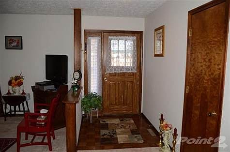 Well kept all brick ranch on 5 acres with two outbuildings. The spacious living room has new neutral carpeting and one wall of oak built-ins. Kitchen and eating area have ceramic tile flooring and a wood stove in the eating area.. There is a walk-in shower in the master bath. Improvements inlcude new carpeting and windows. Roof is 5-6 years old. Septic system was new in 2010. Out back is a covered deck which overlooks the country side. The two outbuildings include a garden shed with cement floor and a 30x50 building which has two garage doors, shop and seperate room which could be an office plus a lean- to on the side of the building. This makes a great place for a small business, hobbyist, mechanic etc. The level 5 acres also has numerous fruit trees.