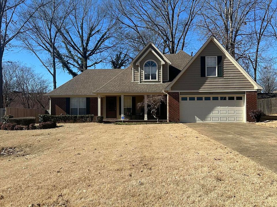 Southridge Estates - Well maintained 3BR 2.5 BA home in the heart of Olive Branch. Relax on your covered front porch in the swing or rocking chairs. Walk thru new front door, w/half bath just off entryway. Nice size kitchen with stainless steel appliances, granite countertops, breakfast bar, pantry & lots of cabinets & counterspace for entertaining with breakfast room & separate dining room. Spacious great room w/gas fireplace and soaring ceiling to the 2nd level with lookover from 2nd floor which has 2 bedrooms, full bath & UNFINISHED BONUS room or ATTIC. Downstairs is primary bedroom with coffered ceiling, ceiling fan, primary bath with separate 6' tub & walk-in shower, plus UNBELIEVABLE walk-thru closet w/lots of space & storage. Enclosed sunroom/office, just off the kitchen. Gorgeous refinished nailed down hardwood floors down, carpet upstairs & tile in sunroom, 2 full baths & laundry room, wood privacy fenced backyard with covered back porch, patio, stone walkway wrapped around from back porch to side yard. Equipped with inside & back porch surround sound. Neighborhood park with walking track & playground.