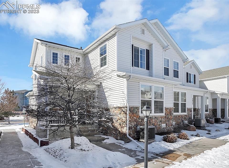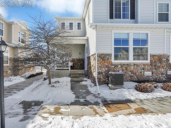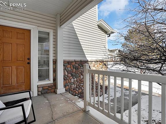 Welcome home to this tastefully updated & remodeled end-unit townhome in the heart of the Powers corridor. Rare 3 bedroom 3 bath with Pikes Peak views from the upper bedroom and the main living area is facing the complex open green space/park. As you enter the home, you are greeted by new laminate wood flooring and the great room/dining combo that is bright and sunny. The kitchen offers a fresh new look with white cabinets with lots of countertop space to do your cooking. The microwave, refrigerator, electric cooktop and oven stay with the home. Enjoy a snack or casual conversation at the counter bar that separates the kitchen from the LIV/DIN great room. The half bath, laundry area and access to the two-car garage with extra tall ceilings completes the main level. Upstairs, you will enjoy the sunset and Pikes Peak views from the primary bedroom complete with ceiling fan and 4pc bathroom with updated wood laminate flooring and linen closet. Two additional bedrooms, one overlooking the common green space and full bath, with linen closet and updated wood laminate flooring, complete this level. New fixtures throughout have also been added. The lighter paint colors and white trim throughout has brightened this unit up and given it a fresh new feel. Need additional storage space? The crawl space and under-stair closet are a bonus! A short walk to Snowy River Park which is a 5-acre public park with a large grassy area, play equipment and a basketball court. Walking distance to the local middle school too. A comfortable place to call your own, this home is move-in ready and is waiting for you! Located close to restaurants, retail, hospitals and more, this home is ready for new owners! Buyer to verify all SF in the MLS.