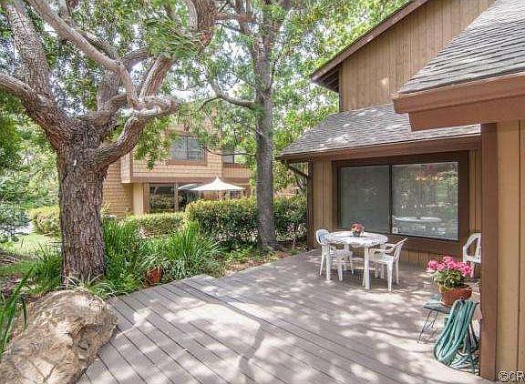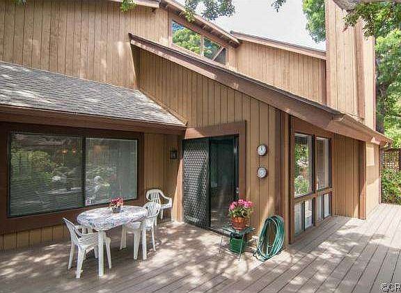 Unique opportunity to live in a mountain-like setting! Amenities include streams, waterfalls, trees, sparkling pool, spa and tennis court. Spacious 2,101 sqft home with a prime location within the desirable Chapman Townhomes community. A wonderful former model home for entertaining or just relaxing in the peaceful resort-like atmosphere. This charming property features 3 bedrooms and 2.5 bathrooms plus a family room that could be used as a 4th bedroom. Amazing view from inside the home of the nearby stream, waterfall and many trees. Open floor plan downstairs with spacious vaulted living room, plus a dining room, family room with wet bar, convenient kitchen and large half bath. Very large master bedroom with vaulted ceiling and full bath upstairs. Second bedroom has a large walk-in closet. Third bedroom features mirrored closet doors. The light and bright kitchen has lots of windows and a view of the water and trees. Kitchen features a gas cooktop, oven, dishwasher and breakfast bar. Living room has a brick fireplace and hearth with gas fire-logs. 2 car attached garage with laundry hook ups and direct access to the property. Abundant and convenient guest parking nearby. Convenient to schools, shopping and restaurants. A great place to live!