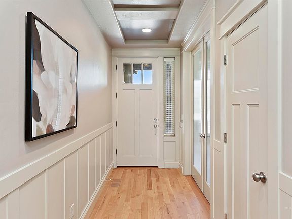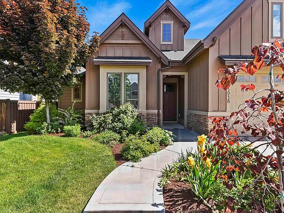This stunning home is nestled against the rugged foothills of popular River Heights. Chic yet cozy, this home wraps you in luxuriant features. Tall ceilings & washed Oak flooring greet you at the door & follow you through the entire house. The entertainer's kitchen impresses with dark wood cabinets that make the Granite counters pop & an extended island. It also sports a walk-in pantry & SS appliances including a gas range/oven. The main suite sports a trayed ceiling, access to your covered patio & an en suite with soaking tub, walk-in shower & huge closet. Other quality features include french doors, skylights, tiled baths & custom built-ins. The expansive upper bonus room with a full bath would also make the perfect 5th bedroom suite. It includes it's own temperature controlling split. Lower maintenance rear yard with a generous covered patio. This upper end community includes a pool & work-out facilities. Moments away from hiking, Boise River, greenbelt, mtn. biking, cafes & the Shakespeare Festival.