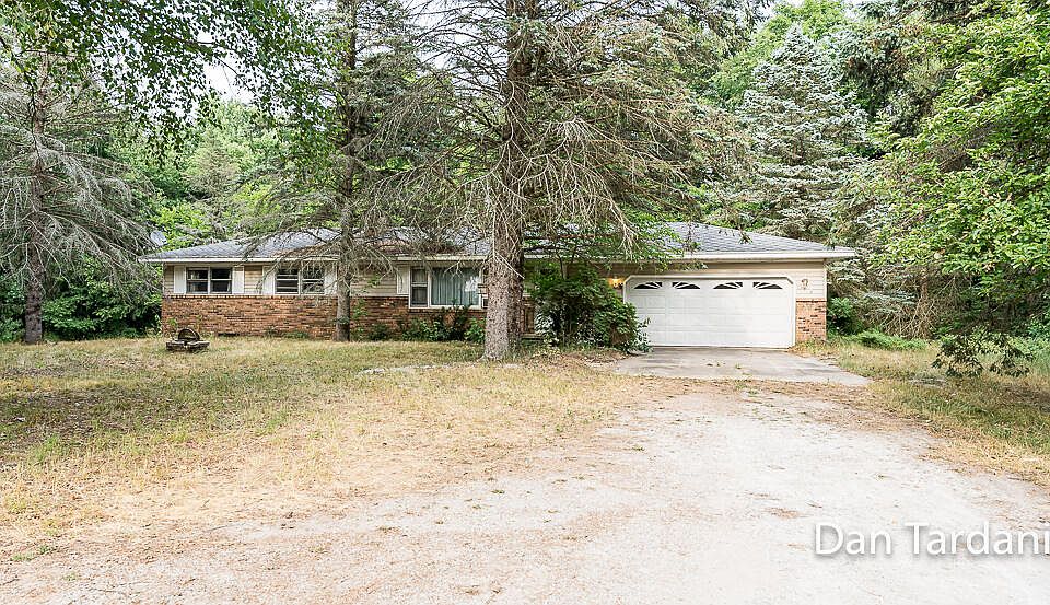 Enjoy 5.76 Acres of country living located just a few minutes to Highway (96). The main level of this walkout Fruitport ranch, there are 3 bedrooms, 1.5 baths, living room with fireplace and sliders that lead to the deck. Walkout lower level has a semi-finished family room with fireplace and a room that could be finished and made into a 4th bedroom by adding an egress window. There is an oversized two car garage plus a 24 x 26 detached pole barn construction garage with electricity. The wooded lot offers excellent privacy and Rhymer creek is in your backyard. Home needs a new roof and lots of updating. Seller is requesting Cash offers only due to its condition. Estate property and Seller is selling in '' AS IS'' condition. Buyer to verify all Info