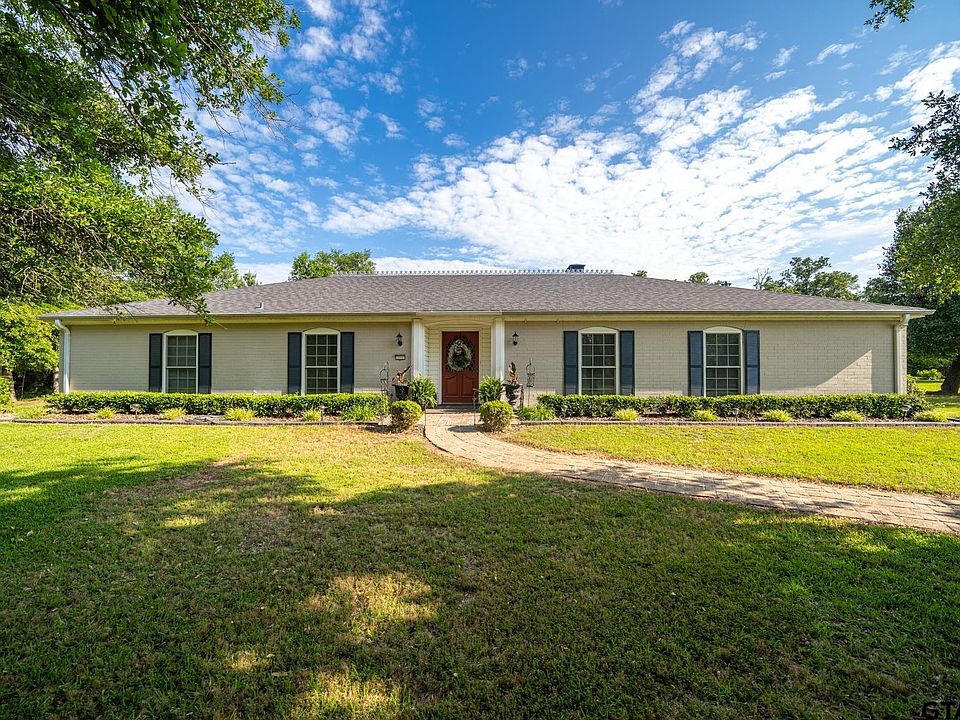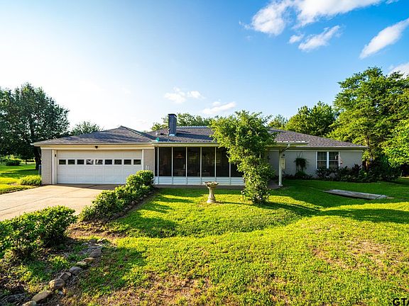 Schedule a viewing today to see this beautifully updated county home in Hallsville ISD. Home on landscaped 3.67 acres, with hardwood and pine on the unrestricted 6.3 acres behind home. Granite counters in kitchen with under-cabinet lighting and numerous electrical outlets for appliances. Large breakfast area plus a separate dining room for holidays. Huge 6’ by 12’ pantry with shelving for food and serving dishes with electrical outlets for appliances. 3 large bedrooms and 2 baths with a separate dressing area off primary suite. Pecan wood-look flooring throughout. A large family room with fireplace insert will keep your home cozy warm in winter. Large screened-in patio. New roof, and HVAC approximately 2 years old. Large 2-car garage with pull down staircase, enters on backside of house. 30’ x 40’ insulated workshop/storage building with 2 roll-up doors and electricity. Also, a small storage building and a 15’ x 40’ covered RV shed with 30-amp service. Gum Springs water inside of house and a 50’ deep 3’ diameter water well for watering yard/garden. Partial fencing and electric gate entry for privacy. Seeing is believing the many possibilities of this lovely country home with acreage.