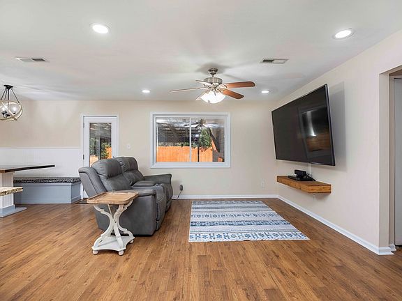 Don't let the exterior fool you—5938 Reed Avenue is full of surprises! Step inside and be greeted by an impressive 22'9" x 25' open-concept living, kitchen, and dining area bathed in natural light. The spacious primary bedroom (15' x 12') is a true retreat, while the two additional bedrooms (10'5" x 11') offer flexibility for guests or a home office—one even features a custom-built L-shaped desk. The oversized laundry room (8'4" x 11'3") provides plenty of storage and functionality. This home is packed with upgrades, including gas heat, a gas stove, and sleek Frigidaire stainless steel appliances, including a refrigerator. Four Nest security cameras provide peace of mind, while tinted front windows add privacy and boost energy efficiency. Two large TVs—one in the living room and another on the patio—stay with the home, along with a stunning cedar entertainment shelf. Love outdoor living? This home delivers with an expansive 21' x 23' covered patio, perfect for year-round entertaining. The privacy-fenced backyard offers seclusion, and with no trees, you won't spend weekends raking leaves. Plus, the wide fence gate allows vehicle access—ideal for extra parking or recreational storage. Spacious, modern, and move-in ready, this home is truly one-of-a-kind. Come see it for yourself before it's gone!