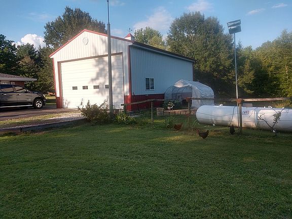 Four bedroom two and a half baths ranch brick home 1 1/3 acre, two car garage, 24x36 pole barn and another garage for storage. Hardwood floors, gas fireplace, walk-in closet in master bedroom, new roof 1-year-old and new gutters, new hot water heater, new 90% furnace 2-years old, privacy fenced area with doggie door. Updated master bathroom onyx shower with granite countertops double bowl sink. City water and well is Hooked up to all outdoor spigots for watering plants Saving on your water bill.