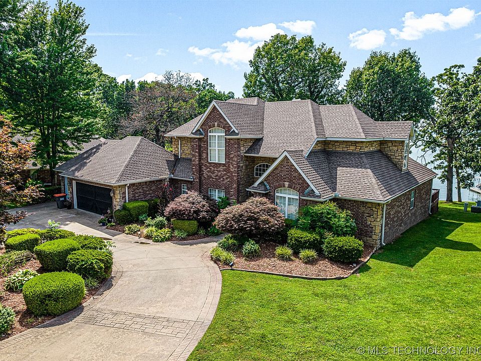 Looking for a spacious and stunning lake home on Grand Lake, just minutes from downtown Grove? Look no further! This timeless 4-bedroom, 4-bath retreat offers elegance, comfort, and unmatched lake views. Step inside to a gourmet kitchen that's perfect for creating culinary delights while staying connected to the open-concept living area, all overlooking Grand Lake. Each bedroom is thoughtfully placed on its own level, complete with private en-suite bathrooms. The primary suite, located on the entry level, features a luxurious spa-like bath and a beautifully designed walk-in dressing closet. Out back, enjoy a gentle slope leading down to your private boat slip, ideal for easy lake access. With no restrictions for VRBO or Airbnb, this property also doubles as a fantastic investment opportunity.