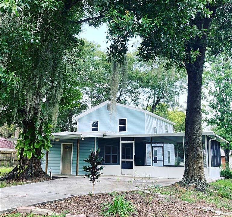 Looking for space within the city limits or how about an investment property? This unique two story home has 3 bedrooms / 2 baths with an additional office/ loft space and a Brand New A/C unit is a Must See! This is a rare find in Zephyrhills. Located on a 1/2 acre fully fenced lot within the city limits. Enjoy the beautiful mature oaks on the property from your large screened in porch. The home has a separate exterior entrance for the upstairs which makes it ideal for multi-family use or rental. Gas appliances, updated bathrooms and a laundry room are some of the homes features. This home is waiting to be loved again. Property was previously rented out for $1200 a month. Close to downtown shopping and dining. CALL TODAY for your private showing or virtual tour.