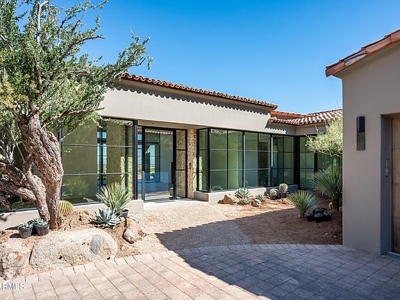 Spectacular views, nestled in nature, this hillside home w/ a Private detached Guest house below offers peace and tranquility on the highest point of prestigious Hummingbird Lane. it features Floor to ceiling glass & expansive window walls thru-out on a single level . Premium quality construction & finishes: Double wall design w/15'' thick steel & concrete exterior walls + int. framing, the latest tech-engineering propelled the design. Wired for full automation; Hi-speed Tesla chargers in His & Her garages. Landscape near completion w/ a 50ft. circular Entry court that allows Parking for 6+ cars. 2 separate Pave-stone drives. Main home is 5600 sq.ft. and a private year-round Guest home of 2700 sq.ft. gives a multitude of options. Private pool at the Guest house a full sub-zero kitchn. Quiet sophistication is the theme of the home. The Views capture Mummy Mnt,.to the South and panoramic vistas to the North w/ a private Desert garden that provides a nature trail for access to Hummingbird Lane. A very special MM-Park view lot is double deep and fronts on Quartz mnt. on the North and ascends to Hummingbird Lane on the South for perfect sunrise & sunset walks. The guest house was designed for parents or family use w/ all the amenities of a SFR home. Separate Dining room/ family/Living room & breakfast area. Currently has a spacious 2 car garage, but home could be reconfigured for more garages or anything to suit the needs of a buyer who appreciates the finest Hillside/North views in PV. on a very special lot. $ Million+ Boulder Formation & landscape package w/ mature-select Ironwood & desert trees; the setting & location.....is a must see to appreciate.