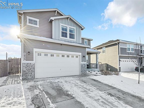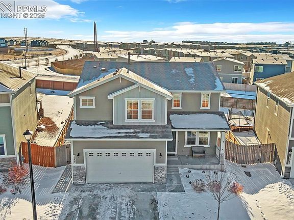 Welcome to this beautifully designed 4-bedroom, 3-bathroom home offering over 2,300 square feet of living space in the sought-after Lorson Ranch community. With a 2-car garage and no backyard neighbors, this home offers both privacy and convenience. Step inside to discover an open, inviting layout featuring on the main floor a family room , living room and adjoining kitchen with sleek stainless steel appliances. The spacious loft on the second story provides additional living space, ideal for extra storage space or a relaxation zone. The luxurious primary suite displays breathtaking views of Pikes Peak and a 5-piece ensuite bathroom with a garden tub, walk-in closet, and separate shower for a spa-like retreat. Enjoy the outdoors with an extended concrete patio and pergola in the backyard, perfect for all your outdoor activities. A new roof adds peace of mind, and a covered front porch welcomes you home every day. Located close to top-rated schools, parks, and scenic walking trails, this home offers both tranquility and easy access to everyday conveniences.