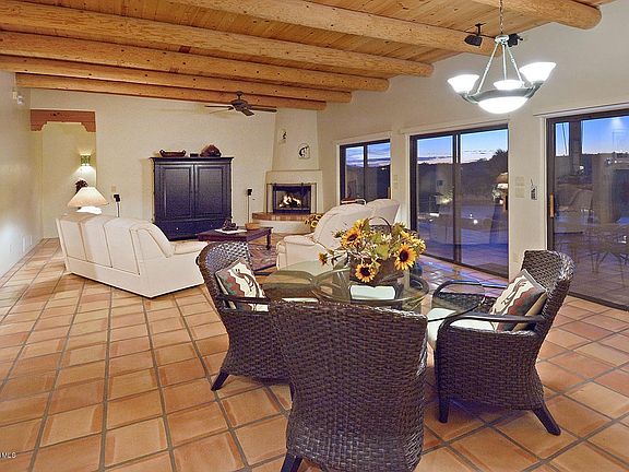 For more information on this property, contact the Listing Agent, Christine and Russell Long at (520) 529-1116 or longs@LongRealty.com. Outstanding 4 bedroom Santa Fe style home on a glorious 1.49 acre lot overlooking Pontatoc Canyon, La Paloma and the Catalina Mountains. With sweeping, unobstructed city, mountain and sunset views, this TRS home offers courtyard entry with fountain, extensive use of Saltillo tile flooring, viga beamed ceilings, gourmet kitchen with island bar opening to family room with fireplace and a wall of windows. Formal dining room, spacious master suite, separate laundry room and three car garage. Enchanting covered rear patio with fireplace, built-in bar, pool/spa and easy care landscaping front and rear. Roof recoated in 2013, HOA includes community pool, tennis and trash collection. District 16 schools and so much more. See to appreciate.