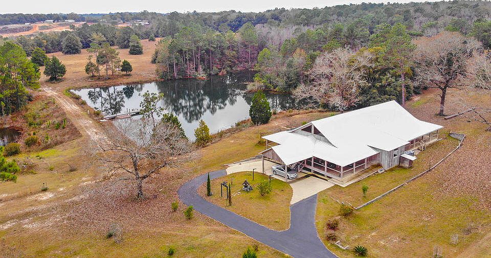 Location! Location! Location! Just a few minutes away from everything Crestview has to offer but secluded enough to give you the peace and quiet you have been looking for. With over 3500 square feet, 38 acres and two beautiful ponds! A paved winding drive passing big oak tress with wonderful views of the ponds leads to the house. With a wrap around porch there are plenty of unobstructed views on the ponds. Once you enter the house you will see the breathtaking beams that line the vaulted ceiling. The home boasts an open concept flow from living areas to the kitchen. The flooring in the living area is pine harvested from the property and it runs the length of the hallway. The wood lining the chair rail is oak wood also harvested from the property along with the wood above the entrance door. There are two bedrooms with one office down stairs. The master bedroom has an en-suite bathroom. There is also a second bathroom on the hall for guest use. There is a loft that overlooks the spacious living area. There is a basement safe room downstairs. There is a large barn with plenty of storage space for all of the outdoor equipment you could ever want. This one is a must see. Call today to schedule your private showing.