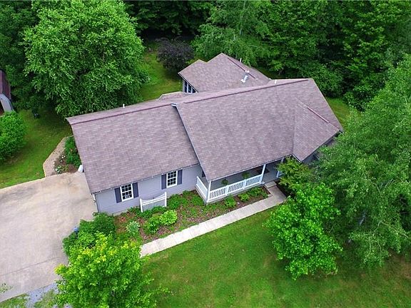 Looking for that secluded private getaway with 5 acres of land and a home with room to grow? Look no further; this tree lined ranch has it all! This property creates its own private drive complete with 1/2 acre scenic pond, that leads to a large concrete turnaround and parking area. A covered front patio looks through the trees and beckons you inside to find high polished hardwood floors filling the home around the tiled foyer. A chandelier hangs in formal dining area as two large windows help to light the room. A massive kitchen showcases a unique looking window to the living room, as tiled backsplash accents the laminate counters. A sun filled eating area leads towards rear patio entry along with first floor laundry services. The sprawling living room boasts a gas fireplace and directs you towards a carpeted sunroom where window lined walls are separated by a pair of French doors. The master bedroom offers a sizeable walk in closet along with an expansive master bath complete with oversized tub and shower. Two additional first floor bedrooms each feature big living space and ample closets. A second full bath resides nearby. First floor private laundry complets thsi one-floor living. Storage is provided by a full basement, complimented with a large outdoor shed. This home has a gas generator for your convenience.