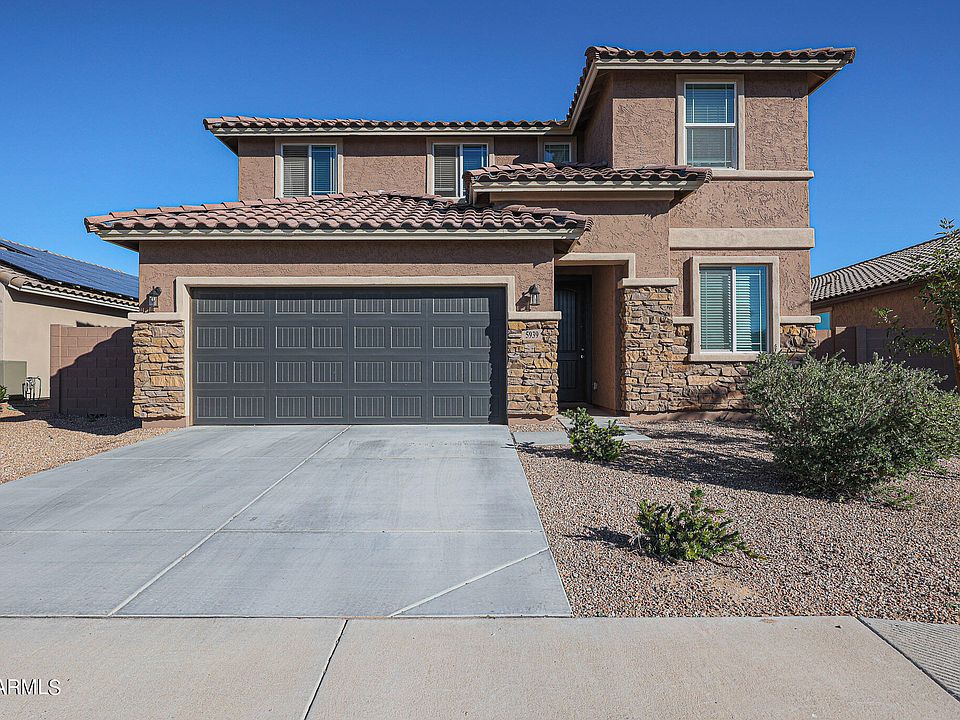 Step inside this spacious two-story open floor plan with beautiful finishes and natural light pouring throughout. Built in 2020, the main level offers a spacious living room, kitchen and two downstairs bedrooms with full bath. The pristine kitchen has tons of cabinet space, granite counters, a central island and upgraded appliances. Upstairs features the primary suite and two additional bedrooms, laundry room, and spacious open loft area that is perfect as a playroom or relaxing and watching TV. The backyard is a blank slate ready for your pool and personalized landscaping.