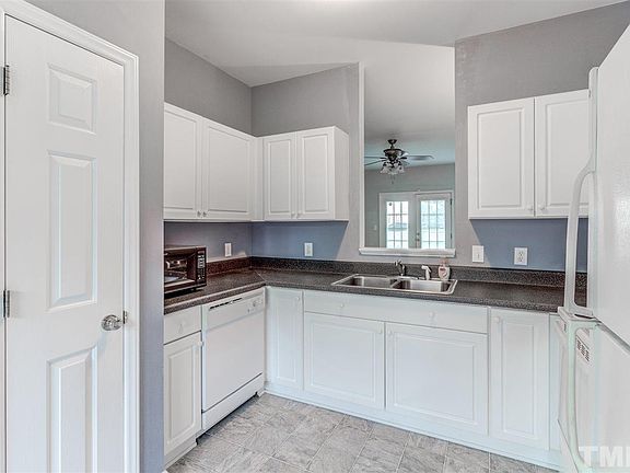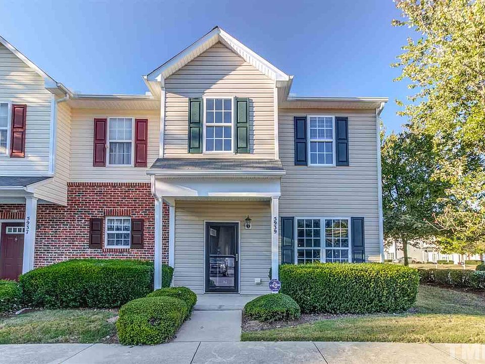 Move-in ready end-unit townhome in convenient location, mins to I-540, US-1, Triangle Town Center & walkable .8mi to Neuse River Greenway Trail! Fresh paint thru main level, brand new storm door w/built-in roll down screen, new shutters & new doorbell! HVAC converted to dual zone in 2009 plus new condensing unit in 2015. Bright & spacious eat-in kitchen w/pass-thru to family room. Master suite has vaulted ceiling, walk-in closet & private bath w/dual vanity! Rear patio overlooks huge grassy common area!