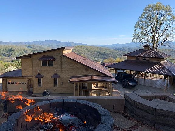 DREAMING OF BIG VIEWS? Here they are with this one of a kind property! This Smoky Mountain retreat has FANTASTIC LONG RANGE MOUNTAIN VIEWS from Onion Mtn, Riley Knob, Fishhawk Mtn, Pickens Nose all the way to Siler Bald and Wayah Bald. This wonderful 2 bedroom 2 bath home features a vaulted ceiling in the living room and dining room, a beautifully updated kitchen with a unique tin backsplash. and the wall of windows and glass doors to enjoy the view! The lower level features a wine room/man cave, storage areas and a terrace that would make additional outdoor seating to enjoy the view. The covered carport area features mutliple tiled bays for vehicles, patio/sitting area, hot tub, and above is a 20 x 12 multi use (game room, viewing room, exercise or yoga, painting studio) bonus room. Wrap around carpeted decks, multiple storage rooms (one with a water storage tank), a half court for basketball, another covered sitting area to showcase the view on the opposite side of the house, a fire pit and so much more! New metal roof this year and new carpeting going in upstairs on May 5th.