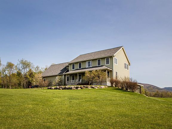 Custom built in 2004, this 3 BR/4 BA home situated on 27+ acres offers phenomenal southern views of the Green Mountains. The current owners designed this sun-filled home with all of the special details and comforts expected in a high-end property. The open concept floorplan features a stunning designer kitchen with a vaulted ceiling leading into the dining area and living room. The first floor includes a private study (or fourth bedroom space) with pocket doors, a wonderfully designed laundry/craft room and bathroom with step-in shower. The upper level features a lovely master bedroom suite with tray ceiling, two walk-in closets, balcony overlooking the expansive mountain views to the south and gorgeous custom bath with large soaking tub and radiant floor heating. A huge 18'x30' guest bedroom space with private entrance from the oversized garage, a third bedroom and full bathroom complete the 2nd floor. Full walkout lower level offers over 960 sqft of finished space with radiant floor heating. Outdoor space includes a 16'x30' Trex deck, 6'x36' covered front porch and oversized attached garage. High-end appliances, custom cabinetry, cherry floors, built in sound system, designer bathrooms, and oversized windows with motorized exterior awnings are just a few of the wonderful features included in this gorgeous home. Some furnishings included with sale. Located just minutes from Rutland and close to Lake Bomoseen and ski areas, this could be the home of your dreams in Vermont.