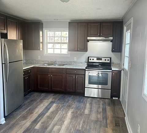 Duplex, Unit A, left side. Newly remodeled. LVP flooring throughout. Includes stove, refrigerator, washer/dryer connections, well/septic, yard maintenance and trash service is included. Central electric HVAC. Nice yard.