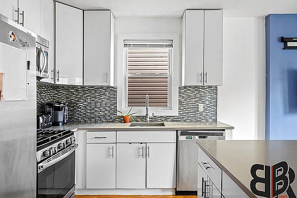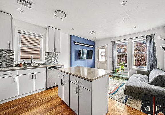 You will love this 2 bedroom PLUS a Jr. room/2 full baths rental. This unit is located on the first floor and includes the full finished basement. Yes 2 floors of living space! Walk into to the first floor with open concept of kitchen and living room. The kitchen has modern white cabinetry, an island and dishwasher. On this floor you have 2 spacious bedrooms and full bath. Interior stairs to your finished basement that has an additional room, another full bath and your laundry room. You have a designated private PARKING spot in front of the house and your own private backyard space. Hardwood floors throughout and central air/heating. Tenant responsible for their own gas, electric and hot water. No realtor fee. Close to Kings H'way bus line B7 and near Utica ave B46.
