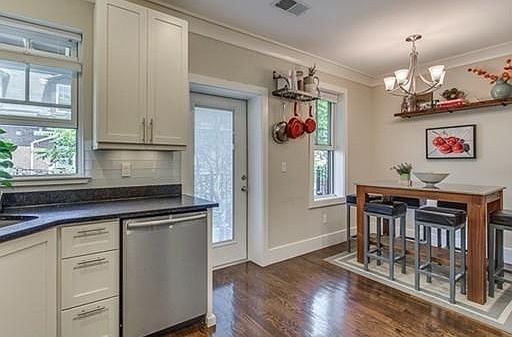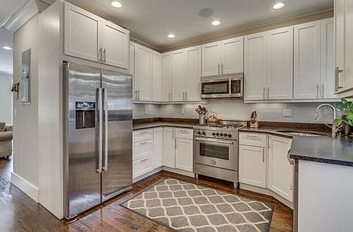 This gorgeous penthouse/duplex, gutted in 2013, is nestled on the corner of K street and East 6th. The exterior has the New England charm as a classic brick row home. The property offers crown molding, chestnut-stained oak hardwood flooring, recessed lighting throughout. The eat-in kitchen has a modern aesthetic of white custom cabinetry, coal granite countertops and top-of-the line stainless steel appliances. Off of the kitchen is a large private deck for entertaining. The living room has a beautiful gas fireplace that centers the room, along with three oversized southern-facing windows that stream in tons of natural light. Both bathrooms offer modern finishes and glass enclosed showers, while the upper level also offers a large soaking tub. The top floor has two generously sized bedrooms with ample closet space. The master bedroom has its own private deck that leads up to the exclusive roof deck with city & water views. Rental PKG down the street for $200/month.
