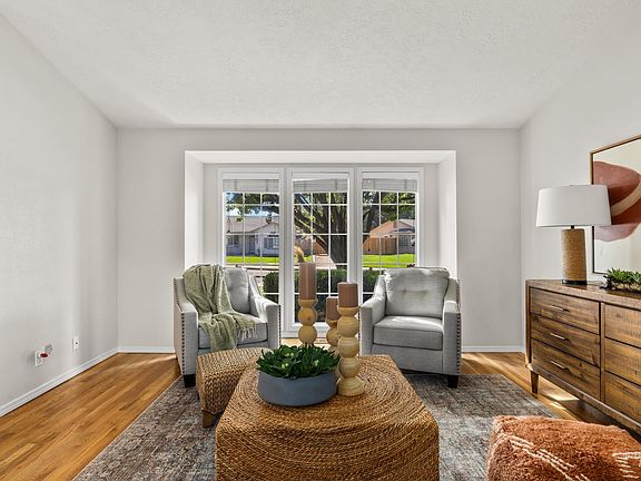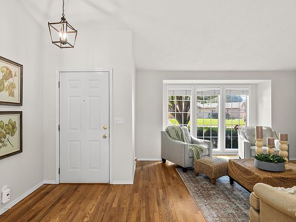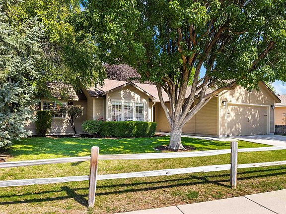 Nestled on a peaceful corner lot within a charming neighborhood, this property offers a rare sense of privacy with no backyard neighbors and no HOAs. The landscaping & towering trees provide shade & solitude, offering a sense of tranquility. The home welcomes you with a bright & open atmosphere, where fresh paint & rich hardwood floors create a cozy, sophisticated ambience. Expansive picture windows bathe the rooms in natural light, perfectly framing views of the maintained yard. The kitchen is thoughtfully designed with stainless steel appliances & abundant storage. A window, over the sink, offers a serene view of the alluring backyard, where privacy is assured with a park directly behind the home. Some of the bathrooms feature updates like new LVP flooring, stylish light fixtures, and refreshed countertops- adding a touch of modern elegance. Located near parks, The Village, Downtown Meridian & I-84, this home allows you to access shopping & entertainment with ease-without giving up the quiet surroundings.