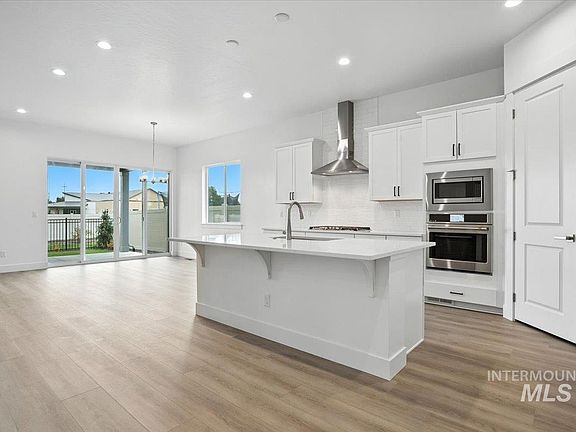 "The Alden / Multi-Generation" by Richmond American Homes, available now. This home is open daily from 10 AM to 6 PM, and no appointment is needed to visit. You can stop by the Information Center at 6069 N. Senita Hills Ave, Meridian, ID 83646, where you’ll receive our full inventory of completed and upcoming homes. Please feel free to ask about our current builder special offers and financing options. This new community is situated in a prime location in beautiful Meridian, with easy access to Hwy 20/26. The Portfolio Collection homes feature elegant luxury finishes such as gourmet kitchens, quartz countertops, gas fireplaces, covered patios, upgraded wood soft-close cabinets, and deluxe primary baths. This home has a separate bedroom and living area apart from main living area. Additionally, all homes come with tankless water heaters, are HERS rated for superior efficiency and low utility bills, and include front and back landscaping, sprinklers, and fencing. Restriction Apply.