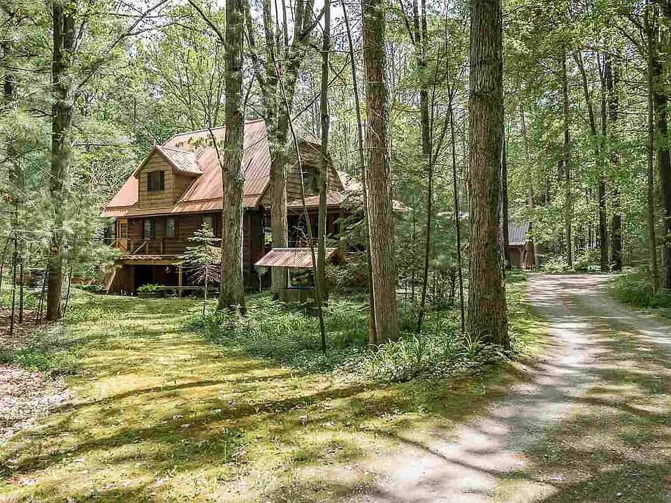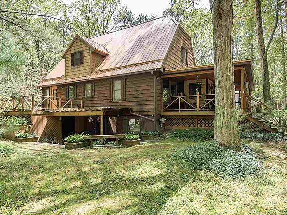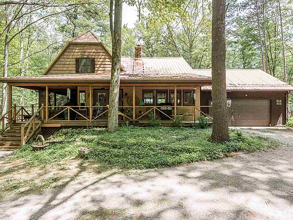 Secluded home nestled deep on a 2.5 acre lot. This cozy, lodge type home has had numerous updates in the past 4 years. A new metal roof on the 36 X 30 barn and home. New furnace and air in 2016, new laminate flooring in the family room, new 6" gutters with leaf guard, a new water heater and sump pump in 2019 and natural gas brought in from the road. The bonus! A new, whole house Generac back up system added for peace of mind during a power outage. The yard boasts a deck and a fire pit for outdoor entertaining. There are numerous plantings and the entire lot is covered with large mature trees. This home is perfect for a lover of privacy and nature.