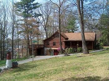 Wallenpaupack Lakeview Log home with deeded boatslip! Prestigous Woodland Hills Community.