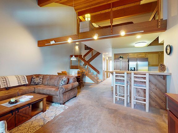 Cozy two bedroom plus loft, 3 bath unit with a ton of added storage located in Snowcreek Resort located adjacent to Snowcreek Meadow. Property features 1656 approximate square feet with vaulted ceilings, gas insert fireplace surrounded by natural stone, stainless steel refrigerator and gas range in kitchen, forced air heating with Nest thermostat, spacious living area, bedrooms and loft. The loft area has a bathroom and two large storage closets with plenty of space for gear and equipment. Snowcreek Meadow is located across the street and the location offers easy access to trail and transportation systems. Sold partially furnished.