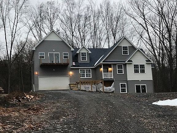 This new build has it all. On 1.4 acres, this 4bed/3bath open floor plan home is filled with potential, beautiful Cayuga lake views, and is ready for its first owner. On the first floor, a primary bedroom with lake views and an ensuite with a walk-in dual headed shower. Cooking and entertaining will be a breeze with the large kitchen and living area, and keep mud and snow at bay in the mud room! The large one-car garage is great for staying warm or dry on those chilly mornings. Upstairs, more than 1300sqft of space includes an office with year-round views of the lake- great for working remotely. There is also a second primary bedroom with a walk-out lake-view balcony, and en-suite bathroom with a marble-tiled shower. As far as functionality, the laundry hookups on both floors and potential to add a second kitchen upstairs really make this home special. The basement is around 1500sqft, ready for a new owner to make it their own! The Form-a-Drain Plus will ensure your home is always dry.