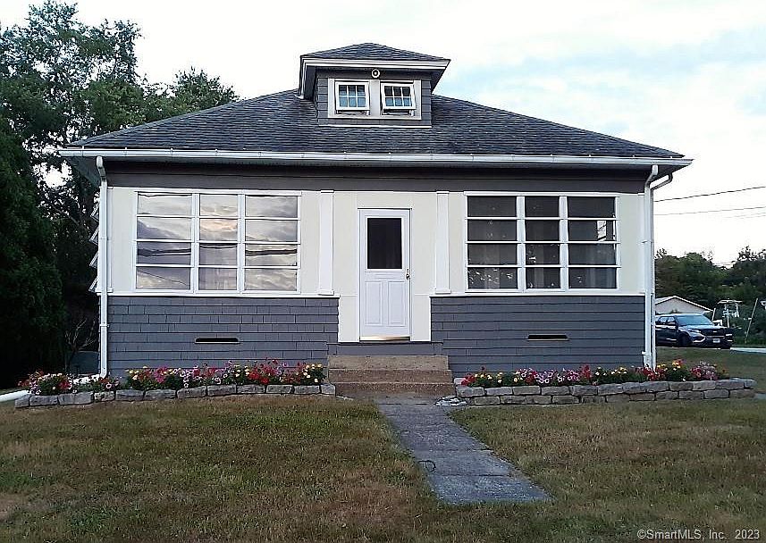 This charming bungalow on an oversize corner lot is in a super convenient location for commuters heading to EB, Pfizer, Groton sub-base, Coast Guard Academy or casinos. The kitchen was expanded in the 1970's and offers plenty of room for an eat-in kitchen and a woodstove. The original hardwood floors are in great shape, the interior doors have the original hardware - there's vintage built in features including the coveted fold-out ironing board. All of the bedrooms are on the main floor and yes - they're small - but that makes it easy to heat, cool and clean! The walk-up attic is completely open and has the potential for added living space. The windows are replacement windows, still some good life left in the roof, the furnace has been serviced on a regular basis and believe it or not- central air! The basement is clean & dry. The back yard is bordered by stone walls, rose-of sharon and holly, vegetable garden in the center of the yard just off the back deck The enclosed front porch offers seasonal sitting/living space; The 2 car detached garage has a sealed rock foundation, garage floor is poured concrete over steel i-beams, the garage basement is currently used to store wood. 2 Sheds also included - so plenty of storage space. Garage is wired for a welder if that's your thing. City water & sewer. Norwich Public Utilities offer lower rates than Eversource. The driveway/garage is on Laurel Heights - there are 2 curb-cuts to access the property from Laurel Heights so if you wanted to you could drive through and out to Laurel Hill Rd.
