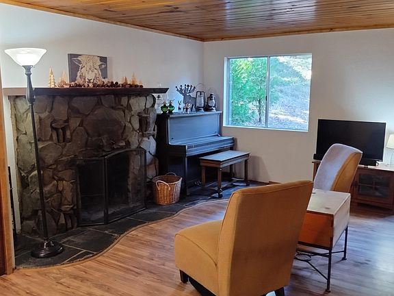 Looking for a mountain home that feels like a cabin but has some updates? This lovely cabin, located on the desirable Loop Dr in Camp Nelson, was built in 1940 but has been updated to keep its character and charm while adding the comforts you appreciate in the mountains. You enter into the large living room with an adjacent dining room/office/bedroom area separated from the living area by glass French doors. On the other side is a wet bar followed by a huge kitchen with recent stainless steel appliances (including double ovens), lots of storage, and an adjacent laundry room and a half bath. Upstairs are three bedrooms and a full bath. Step outside to a recent deck on two sides and plenty of parking for friends and family. Recent flooring, paint, decking, and roof mean the hard work has been done for you and central heat in the main living areas and an oversized garage add convenience. Don't miss out on this one -- call today for your private tour!