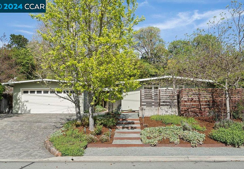 This single-level mid-century classic in Burton Valley boasts a desirable blend of modern updates and timeless charm. This well-maintained home, with four bedrooms and two bathrooms, offers plenty of space with tastefully updated bathrooms, hardwood floors and many recent improvements. The arched wood-planked ceilings enhance the mid-century style. Natural light streams through walls of glass, seamlessly connecting the indoor and outdoor spaces with garden views from every room. The covered patio provides a tranquil retreat for relaxing or entertaining guests. The chef’s kitchen includes premium appliances, with plenty of prep and storage, and a spacious dining area. A deck off the kitchen features a built-in barbecue, and a large burner–perfect for a crab boil! Beyond the kitchen, you’ll find a fourth bedroom (or office), wine cellar, laundry room and mudroom. For dog lovers, there’s an enclosed dog run. The .33-acre lot features a flat area with stone planter beds, open patio, and mature landscaping, front and back, with mature fruit trees, all maintained with a sophisticated irrigation and watering system, a gardener’s Eden. This home balances style, functionality, privacy and outdoor living space, the embodiment of California living– a true haven in Burton Valley.