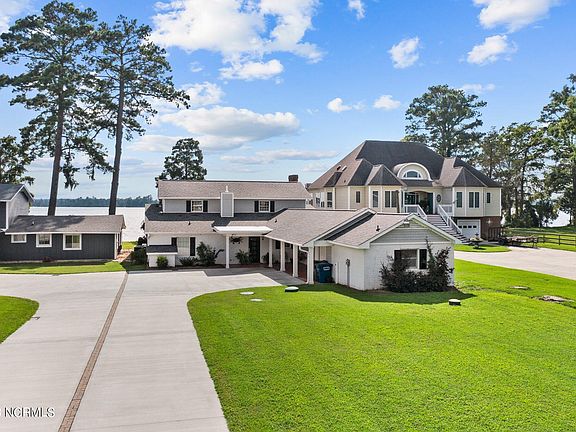 Beautiful Water Front Home on the Pamlico River just minutes from Washington! This gorgeous home was extensively remodeled in 2020 and offers spacious living throughout the first floor. Features include: an open kitchen/dining area complete with granite & concrete countertops and stainless appliances, a first floor master suite with a large closet and a luxurious bathroom with a walk in shower and heated tile floors, and an expansive living room/sunroom area that's perfect for relaxing and enjoying life on the river. The home's interior is an eclectic mix of contemporary details, blending both modern and coastal home elements. At the heart of the home in one of is most creative characteristics, a floating stairway capped with cypress treads milled from a tree that once lived on the banks of one of the river's tributaries. Some of the outdoor features include: a pier and boat lift a large patio, and hot tub. All necessities for entertaining family and friends by the water! Act Fast! This home is a must see!