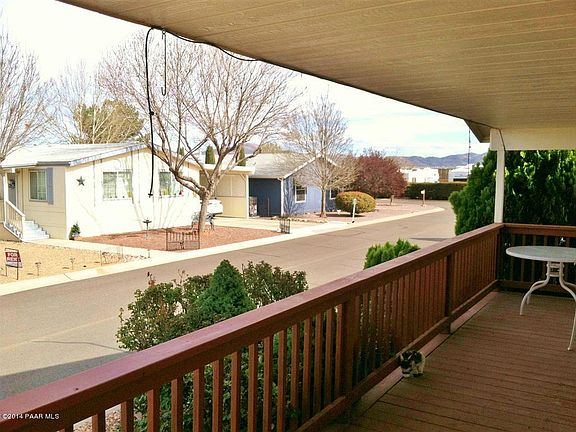 FANTASTIC OPPORTUNITY TO OWN A QUALITY SCHULT HOME WITH A GARAGE! SIP YOUR FAVORITE BEVERAGE WHILE BASKING ON THIS HOMES LARGE COVERED PORCH AT FRONT AND TAKING IN THE MINGUS MOUNTAIN VIEWS. THIS HOME HAS AN OPEN FLOOR PLAN FEATURING TWO LARGE BEDROOMS AND A SEPARATE DEN. ENJOY THE DINE IN KITCHEN OR ENTERTAIN GUESTS AT A SEPARATE DINING AREA. THE HOME IS BEING SOLD ''TURN-KEY'' FOR YOUR IMMEDIATE COMFORT AND CONVENIENCE WHILE SAVING YOU TIME AND MONEY TO BOOT! ALL THIS AND LOCATED JUST A STONES THROW AWAY FROM THE CLUBHOUSE WHICH FEATURES A LARGE BALLROOM, SWIMMING POOL, TENNIS, PICKLEBALL, BILLIARDS ROOM, WOOD WORKING SHOP, EXERCISE ROOM WITH SPA AND DON'T FORGET ABOUT THE REGULATION 18 HOLE GOLF COURSE RIGHT NEXT DOOR! WHAT ARE YOU WAITING FOR?