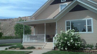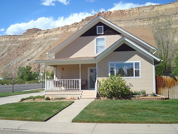 Wonderful home in Palisade with gorgeous views. Great layout with large kitchen/dining opening up into the living room, 4 spacious bedrooms, 2 baths, and plenty of storage. Featuring 1 bedroom and 3/4 bath downstairs and 3 bedrooms with full bath upstairs, two closets in each bedroom, finished play areas in kids rooms, newer carpet and paint. Amenities include a detached 2 car garage, two driveways, raised garden bed, an upgraded evaporative cooler, 3-zone hot water heating system with 2 programmable thermostats, light filtering and room darkening cordless blinds. Very warm and inviting both inside and out with lots of possibilities for living and entertaining with covered front porch, playhouse, and large patio. Great central location in Palisade with easy access to I-70. Must See. Call Today!