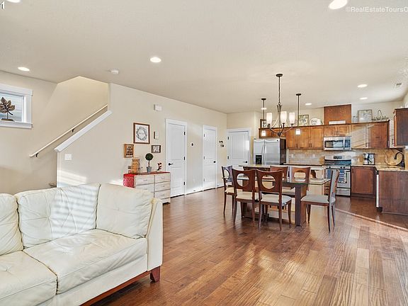 Baseline Woods Neighborhood Completely open concept main level with gorgeous dark hardwood floors & gas fireplace in this 4 bedroom home with A/C. Gourmet kitchen granite counters, stainless gas appliances & microwave. Enjoy the sunsets from the large front porch or entertain in the private fenced yard featuring patio/pavers/raised gardens. Upper level includes primary suite with tray ceilings, dual sinks & walk-in closet plus 3 other spacious beds & laundry