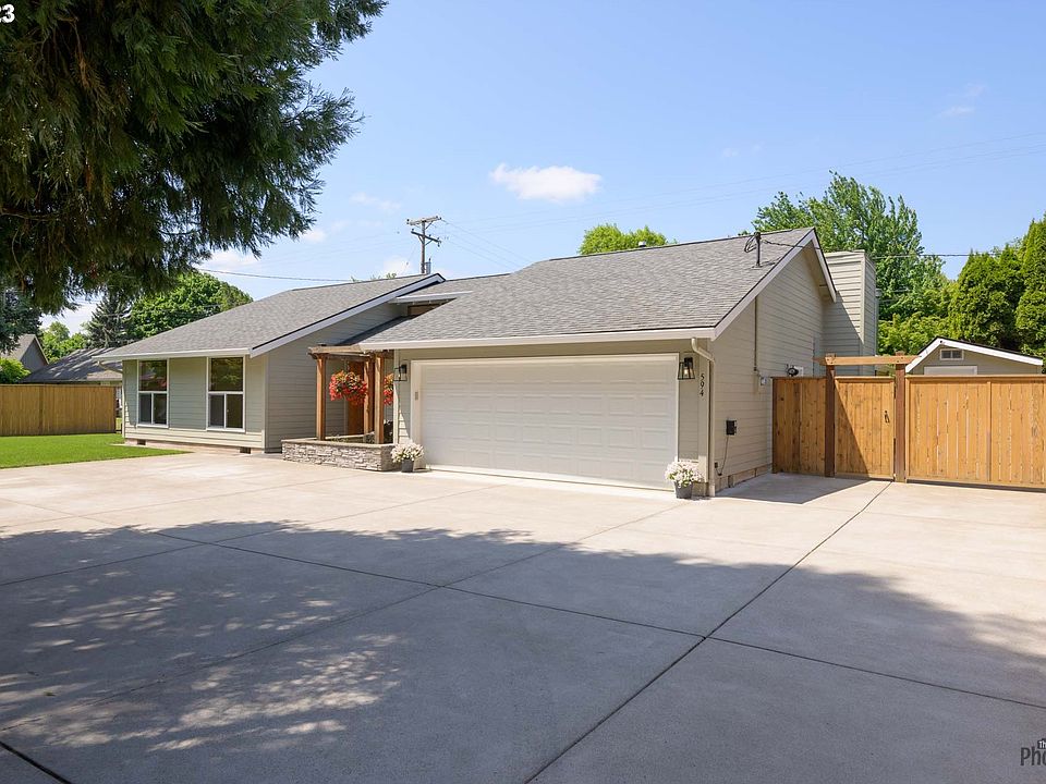 Motivated seller just lowered the price $30,000! PRIVACY IN THE CITY! This is a MUST SEE! Lighted driveway and custom wood arbor with water feature by front entrance welcomes you in to this incredible home w/ private setting. Wonderfully maintained inside and out. Thoughtful custom upgrades with an eye for detail. Hickory hardwood floors Kitchen with wall of pullout shelves, wet bar w/ wine cooler, cherry cabinetry. Vaulted ceiling in dining room and huge window overlooking front arbor and water feature. Huge primary suite w/ gas fireplace and spacious bath featuring separate soaking tub and separate shower PLUS heated tile floors. 19 x 7 walk in closet w/ built-ins. New w/w carpeting in all bedrooms. Inside laundry room leads to sunroom w/ luxury vinyl plank floors, under floor storage, cooled by exhaust fan This room has so many functional possibilities. To appreciate all of the amenities and upgrades this fabulous home offers, PLEASE SEE THE ATTACHED ADDENDUM. Nearly 400 sq ft of covered patio plus adjoining patio off family room. Great spot for a hot tub! Stunning outdoor living area under vaulted patio roof with custom wood ceiling. Enjoy cozy evenings year round in front of the beautiful outdoor gas fireplace featuring extensive stonework, hearth and cedar mantle. Detached workshop w/ skylight. Lots of parking. Raised beds and enclosed blueberry area. Close to U of O, Autzen, walk to Oakway Mall, shopping, restaurants and more. Owner is related to listing agent.