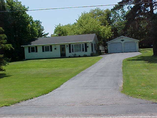 Cozy three bedroom, one bath ranch home, with extras! Large family room with wood burning stove, eat in kitchen, and nice deck area for outdoor living. Detached two car garage, with a separate workshop area and covered patio, as well as a huge heated pole barn with a 1/2 bath and loft storage area. Lots of workspace and with two additional out buildings, lots of storage space as well. Sits on approximately one acre in a quiet area.