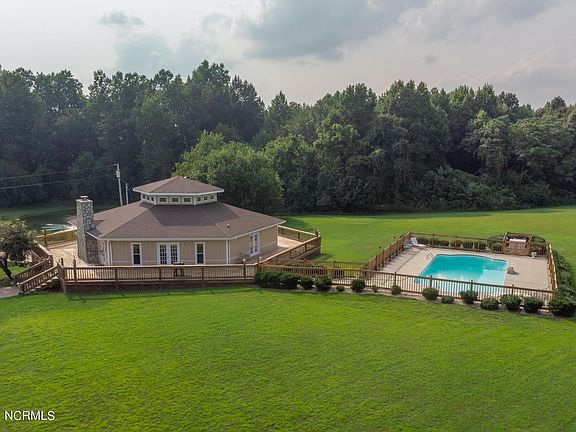 Almost 16 ACRES! Your very own country estate is waiting for you! Bring the horses! And your fishing poles! Nicely STOCKED POND with fountain spray feature! 4 stall barn. Pretty pasture land! INGROUND POOL! This bright and cheery home is situated over 200' back from the road! You'll love living here with beautiful open land and several wooded acres! Clerestory windows in the center of the home are situated over the kitchen and bring in brilliant light from the outdoors! Awesome hardwood floors! Spacious living area with stone faced fireplace plus there's lots of glass that gives fantastic views of the outdoors! This home has a wrap around deck that is accessed from glass doors in the living areas and also all bedrooms! The master suite features a large walk-in closet plus a private bath with deep jetted tub and shower combination. 2 additional bedrooms and 2 more full baths complete the upper level of this unique home! Enormous garage and unheated bonus room in full walkout daylight basement! Huge circular driveway! Easy and convenient access to I-795, Hwy 301, I-95 & Hwy 264 that is great for commuting to just about any direction! Enjoy your best life with country breezes and down to earth living in this comfortable Wilson County home! The country is calling you!! Don't wait!