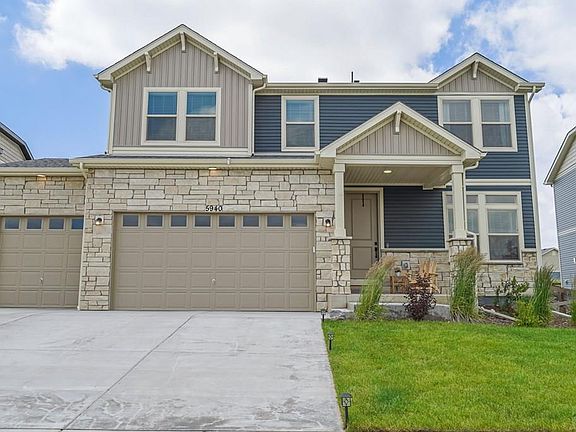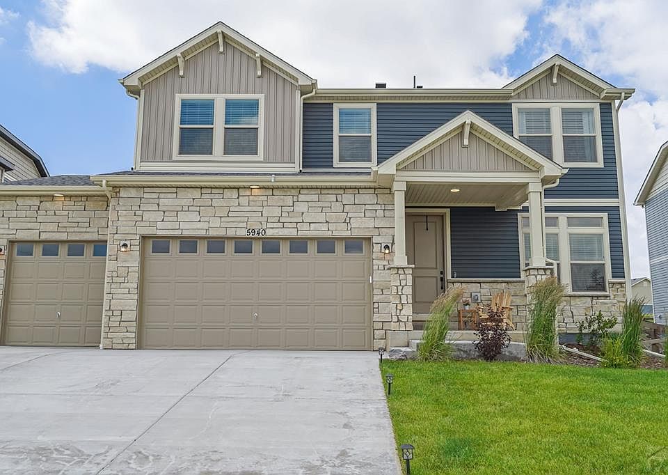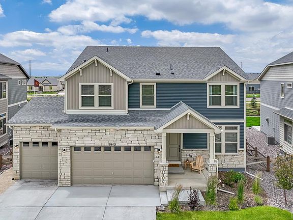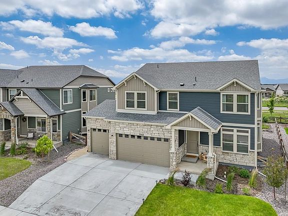 Experience the comfortable living you deserve in a 2021 two-story home located in the Banning Lewis Ranch neighborhood, directly across from one of the many community parks. You'll be delighted to call this home your own! Standing proudly on an impeccably fully landscaped 7,058-sq ft lot (a feature that is not included with most newly built homes). This residence offers an impressive 5 bedrooms, 2.5 baths across a 4,665-sq ft layout. From the covered porch, step inside a beautiful modern interior where sophisticated neutral tones, high ceilings, and waterproof COREtec LVP flooring are on show. Expansive picture windows bring in abundant natural light and frame beautiful mountain views as you gather in the warmth of the living room's stone fireplace. Host memorable celebrations in the formal dining room where a bay window and elegant chandelier add a timeless charm. If a gorgeous kitchen is on your wish list, you're in luck. Treat the avid cook to high-end stainless steel appliances, including double ovens, pristine white cabinetry, a trendy tile backsplash, a butler's pantry, and sleek quartz countertops extending to the multi-seater island. Plush carpeting adorns the well-proportioned upper-level bedrooms, one of which is the generous primary suite where you'll wake up to inspiring mountain vistas. Pamper yourself with its walk-in closet and exquisitely tiled 5-piece ensuite with a quartz-topped double vanity and spa-like shower and freestanding tub. Come for a tour!