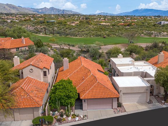Range priced: Sellers will entertain offers between $600,000- $615,000. Beautiful move-in-ready home with private back patio and gorgeous mountain and golf course views towards Finger Rock and the Rincons. Nestled within the prestigious 24/7 guard gated community of La Paloma. Easy split bedroom floor plan with two bedrooms plus a den and two full-sized bathrooms. All on one level. Spacious kitchen and breakfast nook with Corian counters and sink overlooking the mature grapefruit tree in the front yard. Double-sided gas fireplace in the cozy living room and dining area. Side courtyard off the den and second bedroom with colorful bougainvillea. Gorgeous primary bathroom remodel with Knotty Hickory cabinets and granite counter tops. Brand new Marvin sliding patio doors in living room and primary bedroom and squaring off window in living room plus brand new water heater. Both the back patio and side courtyard have power retractable awnings. Perfect lock and leave or easy lifestyle living year round. Heated community pool + spa just steps away with walking paths throughout the La Paloma community with mature vegetation and mountain views. Centrally located and just minutes away from shopping, dining, galleries at La Encantada and golfing at La Paloma Resort and Country Club.
