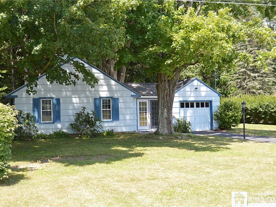 Beautiful 2 bedroom, 1 bath cottage with 806 square feet of living space having an attached one car garage, just down the road from the Prendergast Boat Launch. This property has wonderful living space inside & outside. The cottage has brick pavers that lead to front atrium doors opening into a tiled foyer area connecting to a private L-shaded deck & patio area in the back, the garage & the interior living space. As you enter the home, you will notice the Pergo Moisture Bearer Flooring throughout. A welcoming living/dining room area connects to a remodeled kitchen with island and white cabinets. Newer windows installed in 2013, a roof in 2015 and kitchen remodeled in 2014 are welcome additions. The tiled full bath was done in 2013 and along with all the rooms in the house have welcoming natural light. The middle bedroom has a stacked washer & dryer along with the furnace located in each closet. The primary bedroom in the rear has great views of the backyard and a doorway to the rear patio area. 0ffered with all current appliances & furnishings. Property has convenient lake access at the Prendergast Point Boat Launch. Property has two lots: 062889-297-020-0001-024 and 025