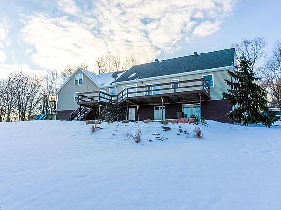 This is one of most Spacious Cape Cods you'll find with a view for days! Enter into the mudroom / utility room that has been beautifully finished with re-claimed solid pine floors. Next you'll find yourself walking in the kitchen that is the heart of this home. Offering plenty of space to gather the family as it is an open concept design with dining area and living room. The sliding glass door leads out to the back deck that overlooks the newly landscaped yard with a koi pond and a larger stocked pond at the edge of the lot. The stocked pond offers bass, black crappy, bluegill, and catfish. Rounding out the main level of the home you will find 2 first floor bedrooms and the main full bathroom. The entire house has fresh neutral paint and new flooring, either luxury vinyl planking or carpet. Moving to the second level, you will find 2 more bedrooms and another full bathroom. The loft above the boot/utility room could be used as an office area and connects the large recreation room, which is completed done in rustic cedar and has plenty of natural light from the skylights. The lower level can be used as an in-law suite with its own entrance. There is a nice sized living room, full bath, and bedroom. There is plumbing pre-installed behind the wall so a kitchen can easily be added . Lovely 4 seasons sunroom on porch. Whole house automatic start generator, so never be without power. This home has so much to offer at a great price, schedule your showing today!!