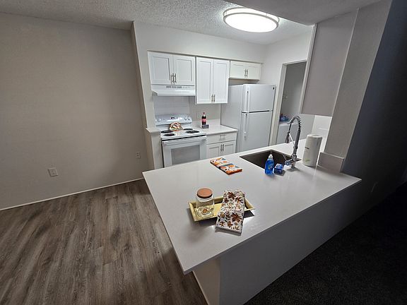 Gorgeous quartz countertopsPlank flooringNew designer white cabinetryRenovated units