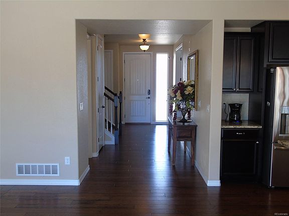 Beautifully customed home, in a desirable area and SD20 Schools. Home features an open concept w/ nine-foot ceilings, oak wood floors & eight-foot doors. Gourmet kitchen is a true chefs dream w/ double oven, granite counters, large pantry & wall mounted pot filler. Master retreat has breathtaking views of Pikes Peak, an ensuite that bost a double shower and an extra larger walk-in closet. Surround sound in living room and on the patio. Basement is a perfect getaway w/ large family room, guest bedroom and relaxing media room w/ wet bar. Many extras, a "MUST" See!!